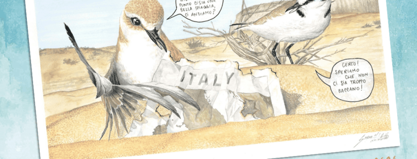 Questa è stata l’idea proposta dal CNCF per il calendario 2020, una serie di vignette che, in maniera divertente, ma mirata e con un pizzico di scientificità, puntano a sensibilizzare i frequentatori, gli abitanti e gli enti che insistono sui comuni costieri, sul tema della conservazione del fratino.